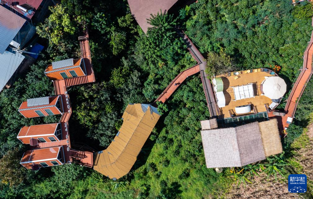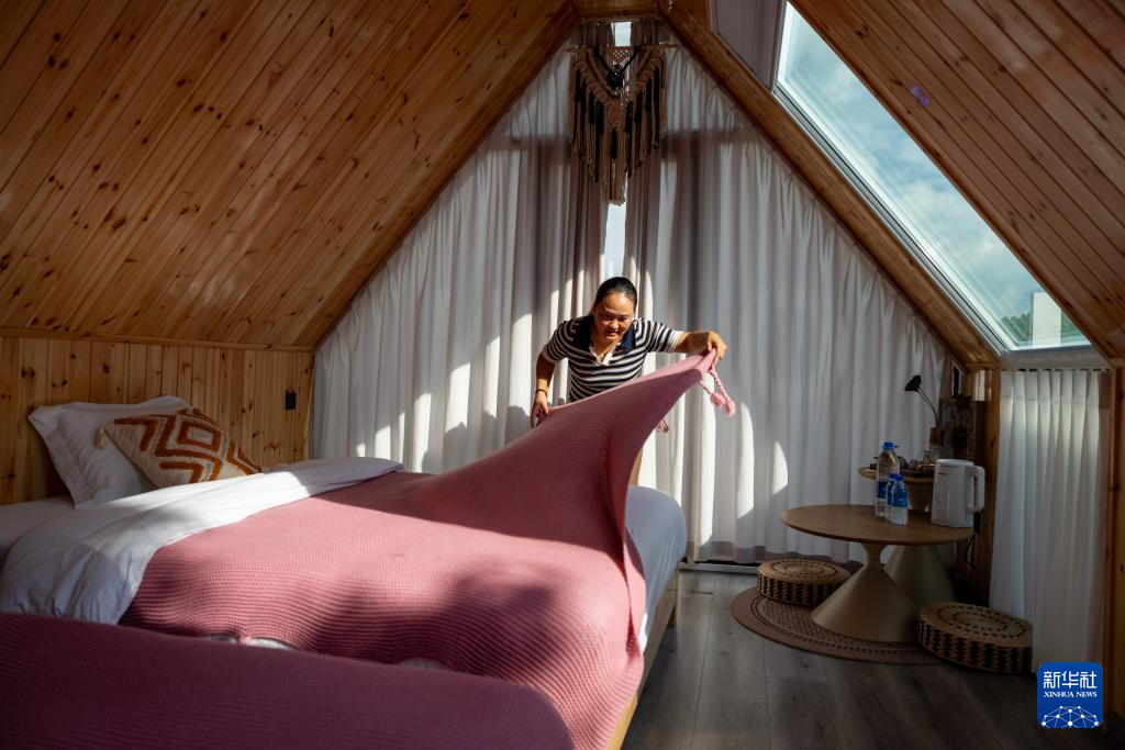10月30日,普洱市孟連傣族拉祜族佤族自治縣橋安咖啡莊園負責人娜兒在打理民宿。