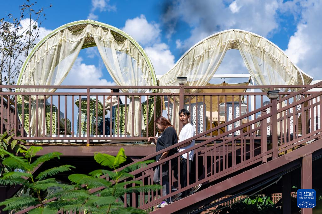 10月30日,游客在普洱市孟連傣族拉祜族佤族自治縣橋安咖啡莊園游玩。
