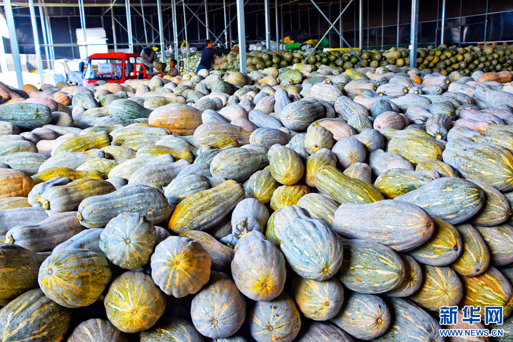種植戶在準備交售的南瓜(10月27日攝)。新華網發(趙樹龍 攝)