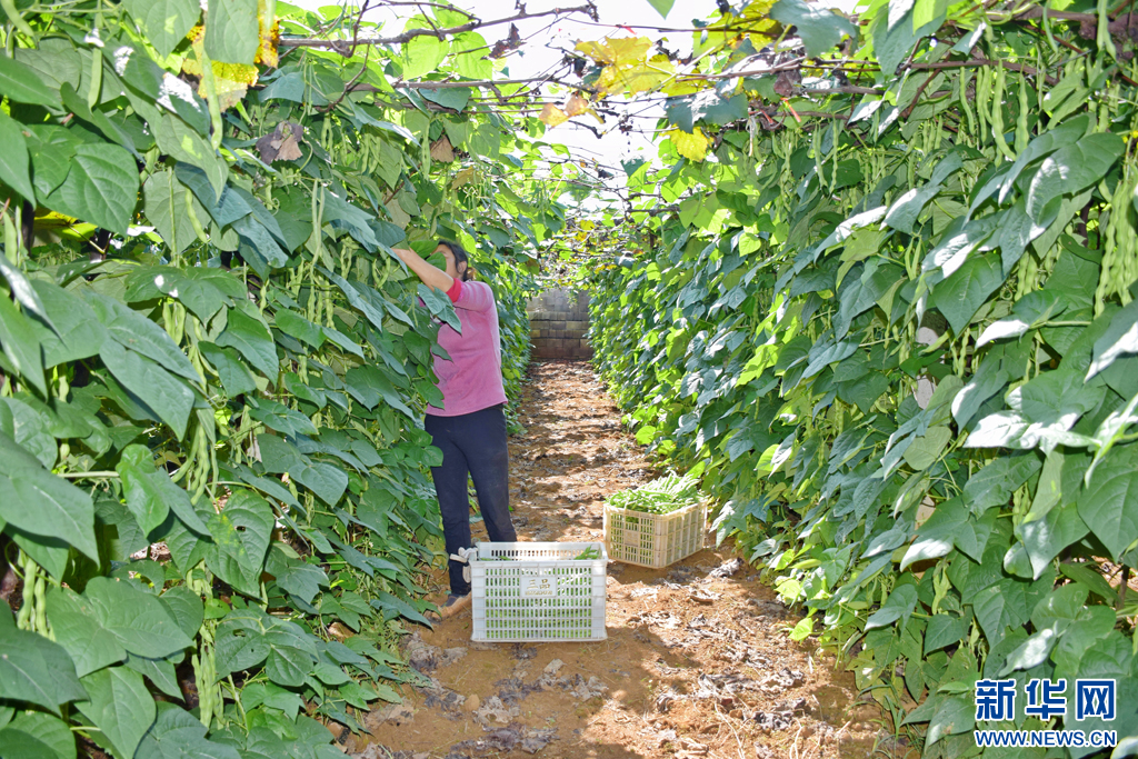 種植戶在采摘無筋豆(10月27日攝)。新華網發(趙樹龍 攝)