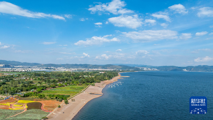 撫仙湖在藍天白云的映襯下顯得格外美麗。新華社記者胡超 攝