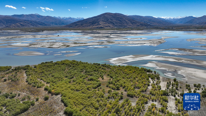 這是雅魯藏布江寬闊的河床和岸邊種植的樹木。新華社記者晉美多吉 攝
