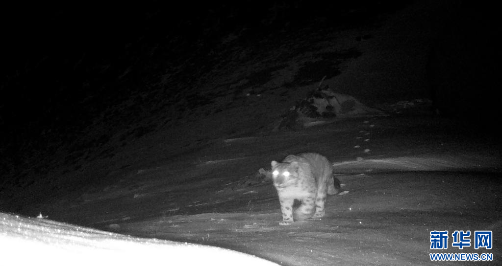 在香格里拉國家公園候選區監測點拍攝到的雪豹影像。(中國科學院昆明動物研究所供圖)