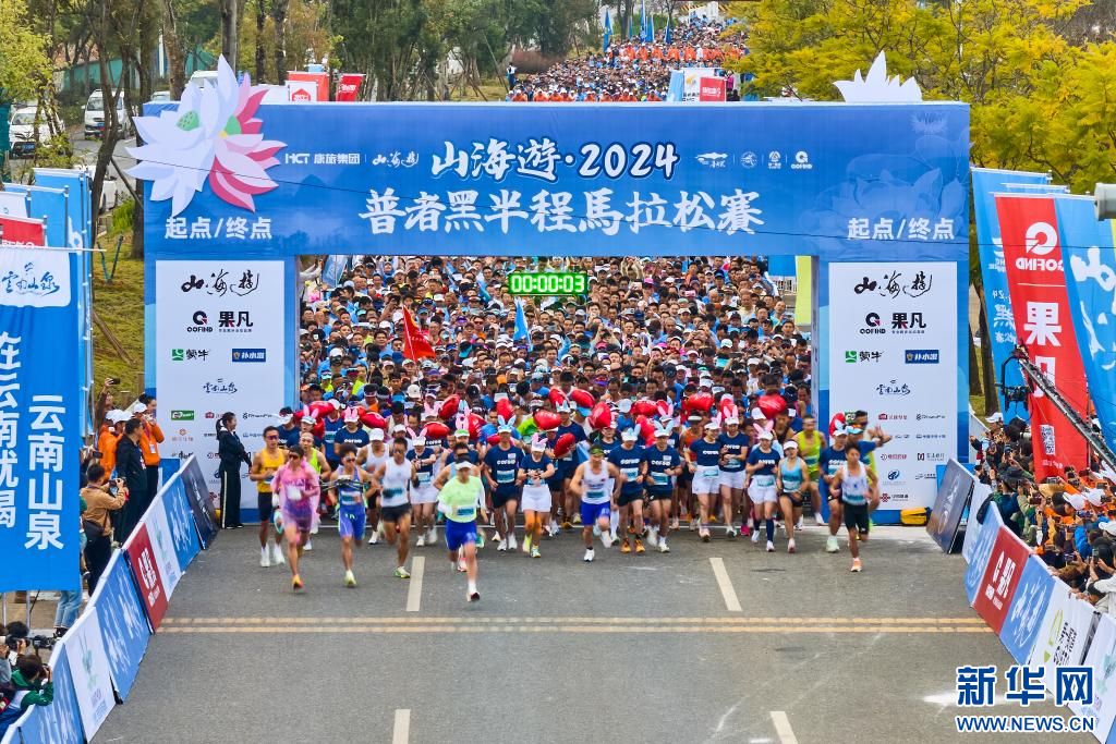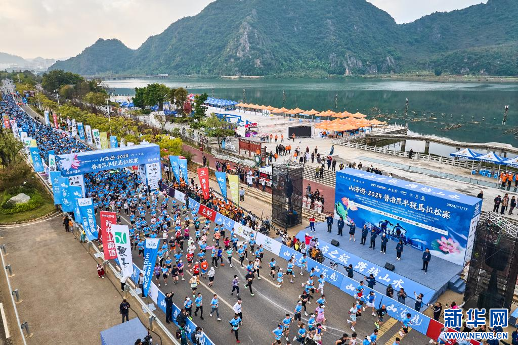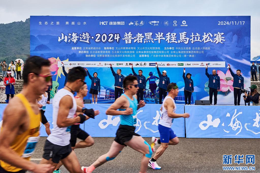 新華網昆明11月18日電(記者 彭奕凱)11月17日上午,山海遊·2024普者黑半程馬拉松賽在丘北縣普者黑風景區音樂噴泉廣場正式開賽。來自天南海北的6300余名選手相聚普者黑,在如世外桃源般的絕美賽道上激情開跑。