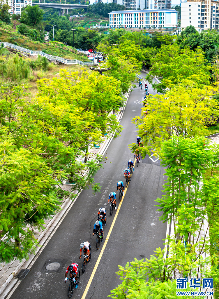 2024環昭通國際公路自行車賽(綏江—水富賽段)比賽現場(11月8日攝)。新華網發(曾三東 攝)