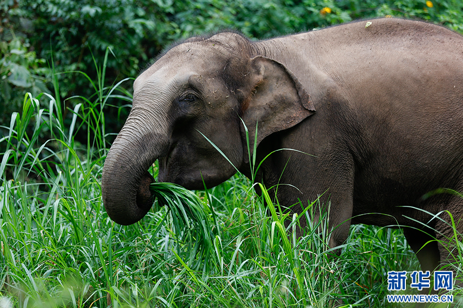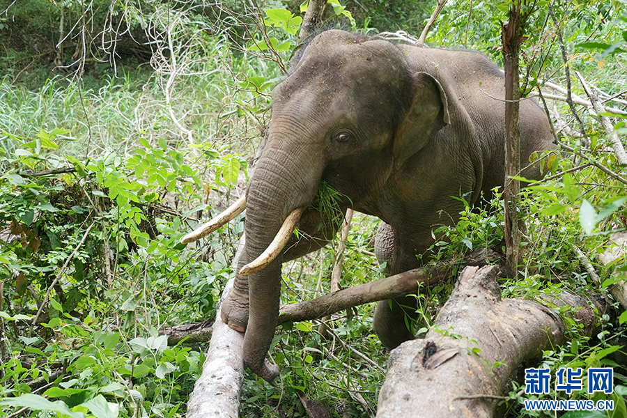 亞洲象在野外采食(1115日攝)。新華網發 徐華陵 攝