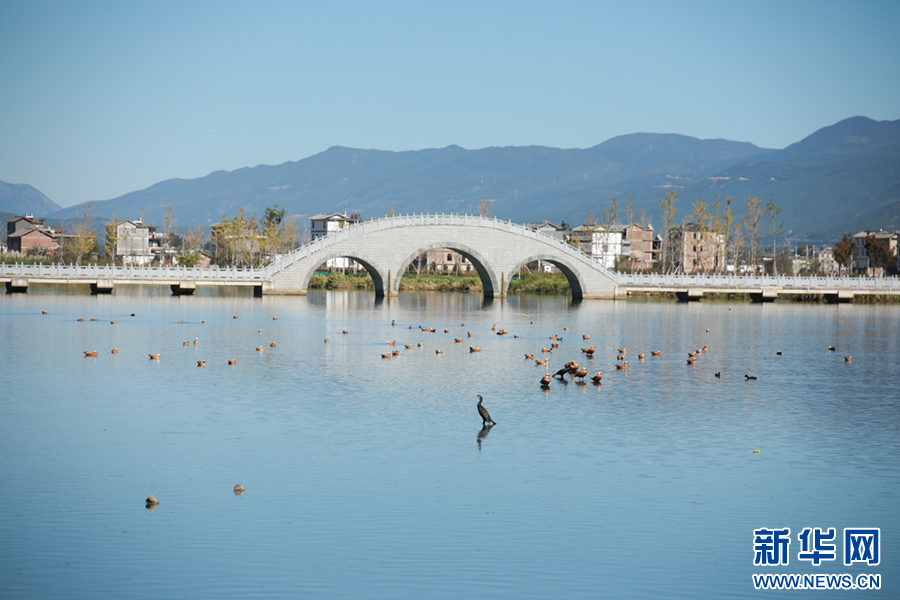 候鳥翩躚,云南省大理白族自治州鶴慶縣草海濕地風景如畫(12月10日攝)。新華網發(唐忠宇 攝)