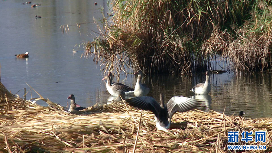 候鳥飛臨云南省大理白族自治州鶴慶縣草海濕地越冬、棲息(12月10日攝)。新華網發(吳金勇 攝)