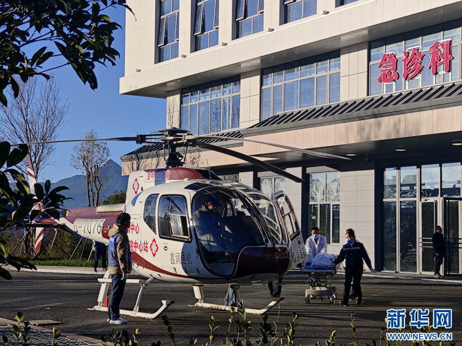 麗江市人民醫院榮華院區進行航空急救轉運演示(12月16日攝)。新華網發 和潤仙 攝