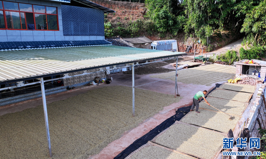 晾曬咖啡豆(攝于12月13日)。新華網發 景谷縣融媒體中心供圖