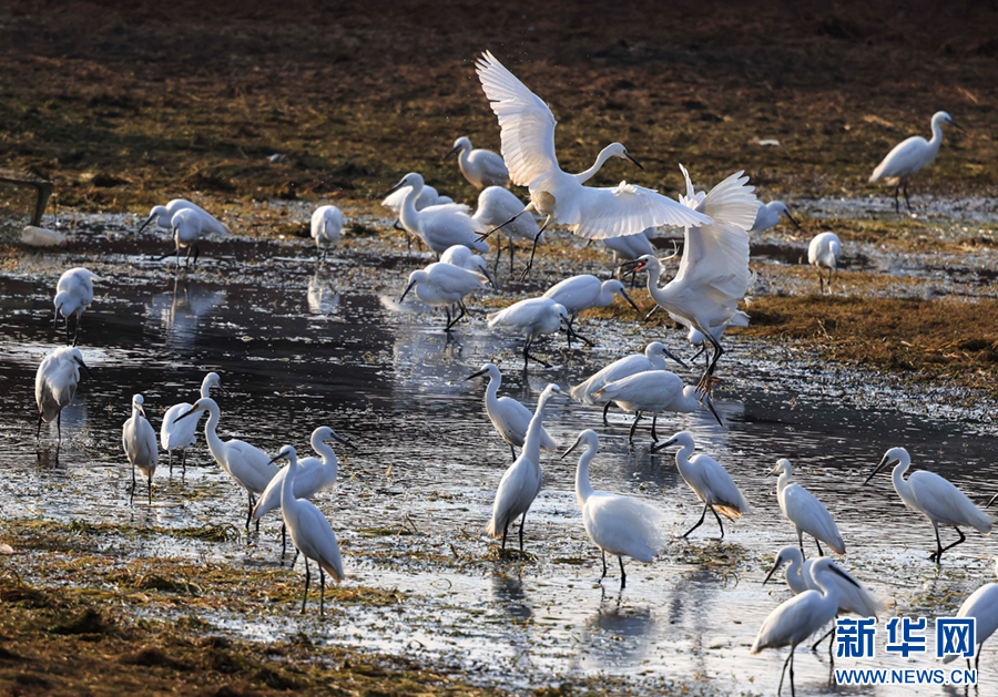 白鷺翩翩起舞(12月14日攝)。新華網發(孫文來 攝)