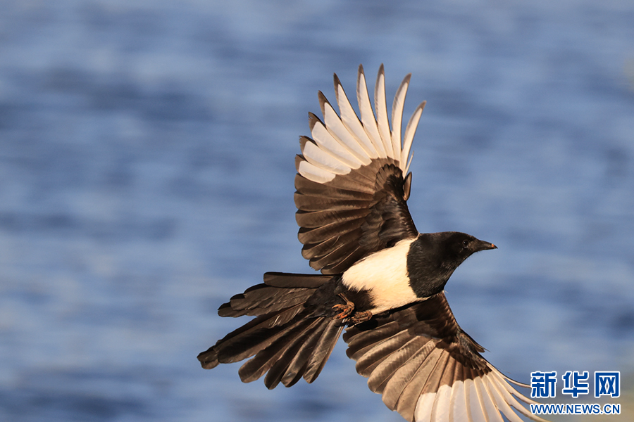 喜鵲展翅飛翔(12月14日攝)。新華網發(孫文來 攝)