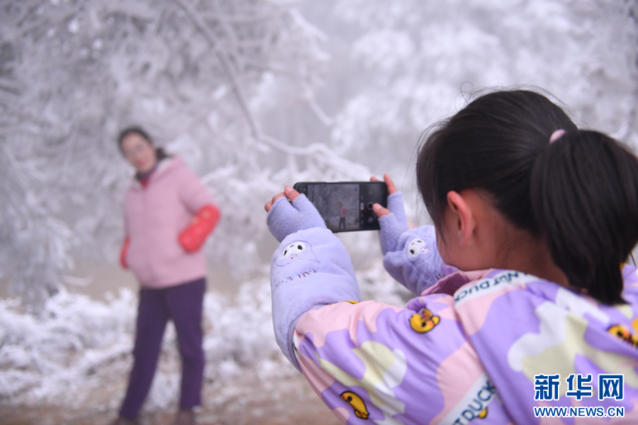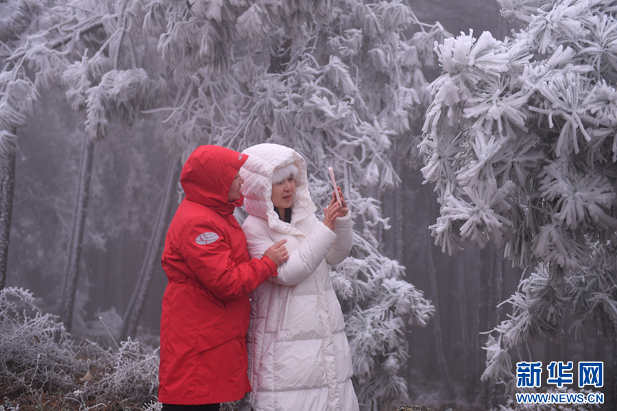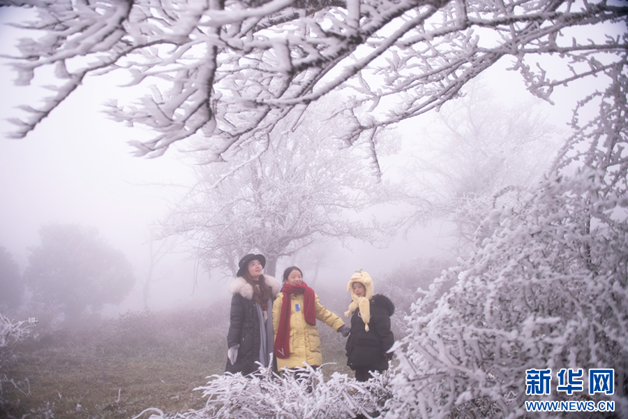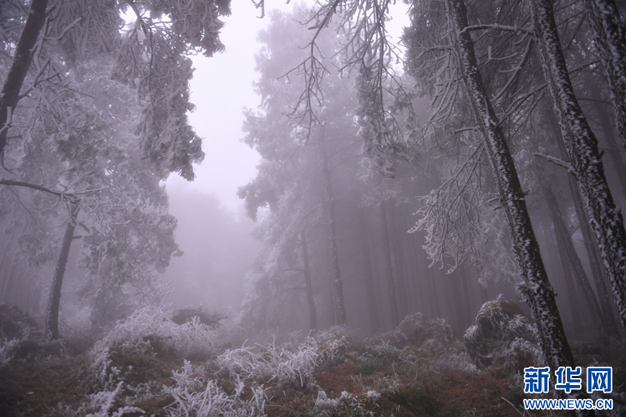 在云南省丘北縣舍得鄉舍得草場拍攝到的霧凇景觀(12月15日攝)。新華網發(熊平祥 攝)