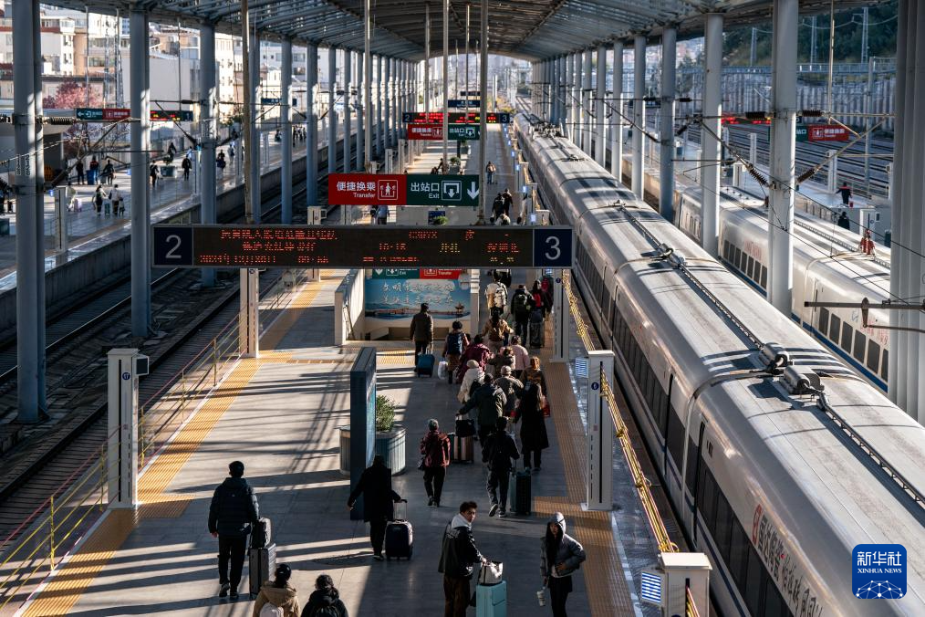 12月30日,旅客在云南大理火車站新建站房驗票進站。