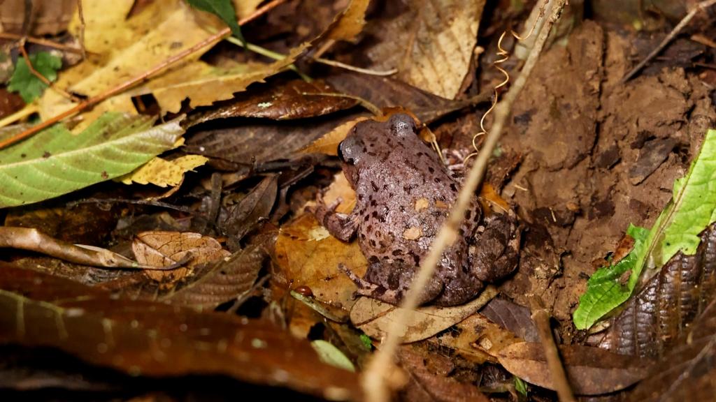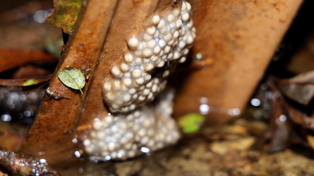 冬日,在云南大圍山國家級自然保護區,密棘髭蟾迎來一年一度的繁殖季。夜晚,氣溫接近零度,密棘髭蟾會挑選水質好、含氧量高且有隱蔽環境的小溪,作為筑巢產卵的地方。