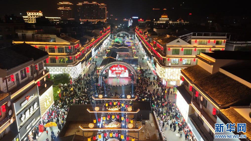 新華網昆明1月6日電 近日,每到夜幕降臨后,在云南省廣南縣城區的句町夜花街上,張燈結彩,游人如織。