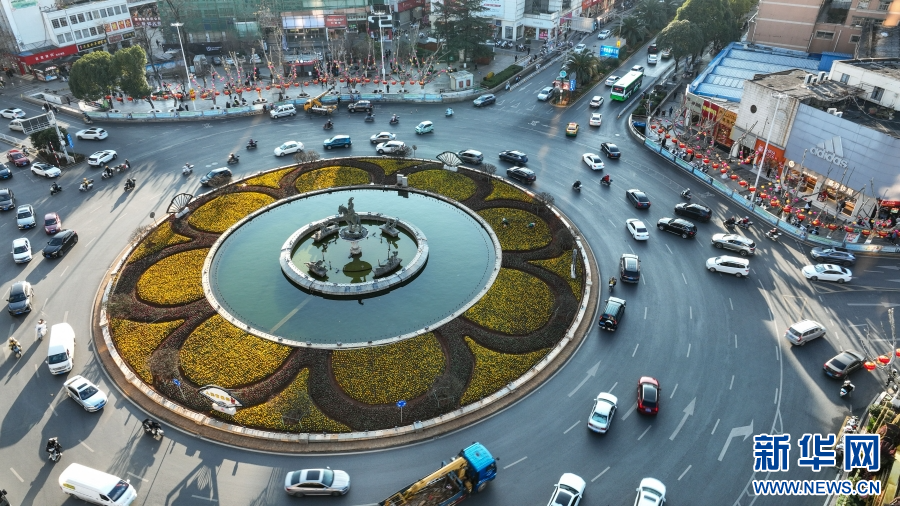 春節臨近,年味漸濃。云南省曲靖市麒麟區在城區主要道路、公園進行燈飾安裝工作,扮靚城市,為新春佳節增添喜慶的節日氛圍。新華網發(孫文來 攝)