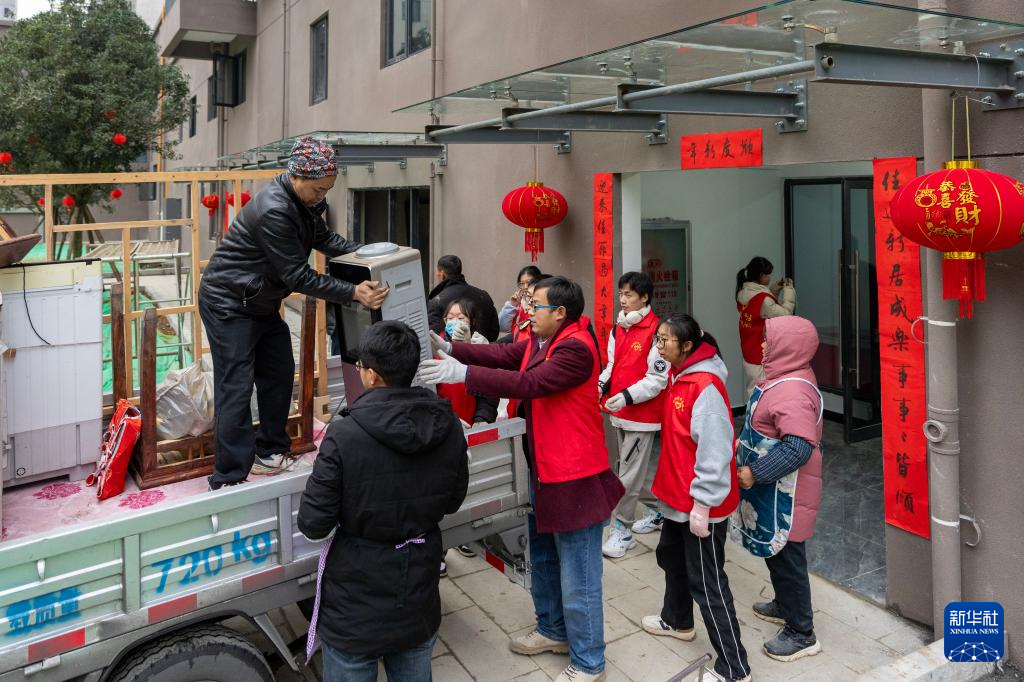 1月16日,受災村民搬運家具準備入住雄俊園小區的新家。新華社記者 陳欣波 攝