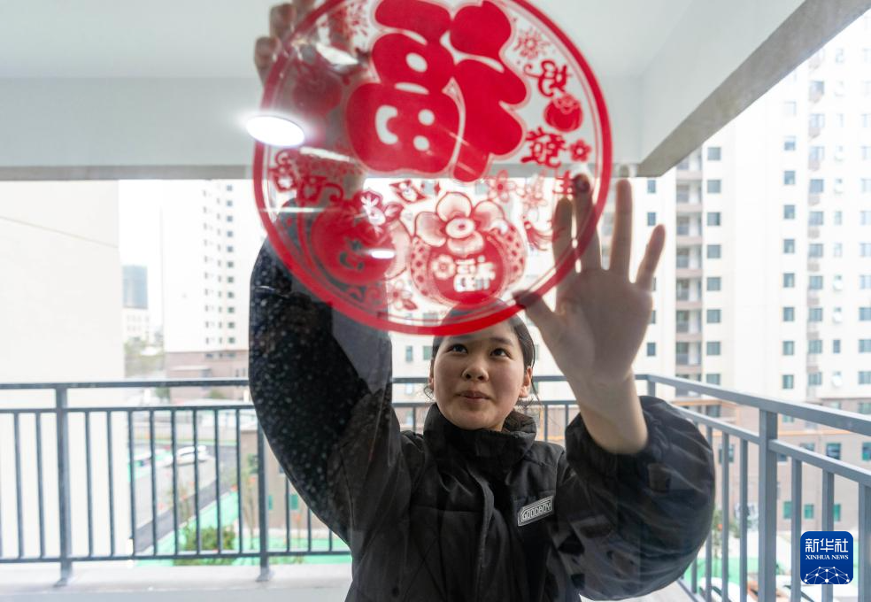1月16日,受災村民在新家中貼福字迎春節。新華社記者 陳欣波 攝