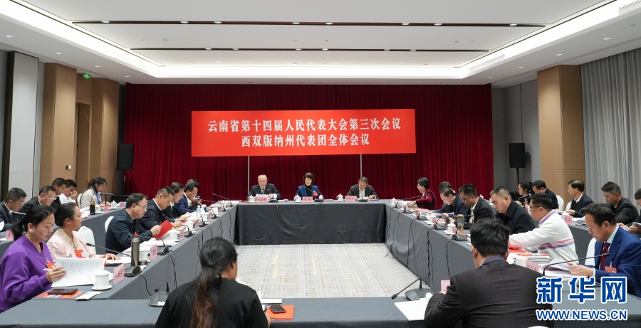 西雙版納州代表團審議2025年云南省政府工作報告(1月18日攝)。新華網發(張思建 攝)