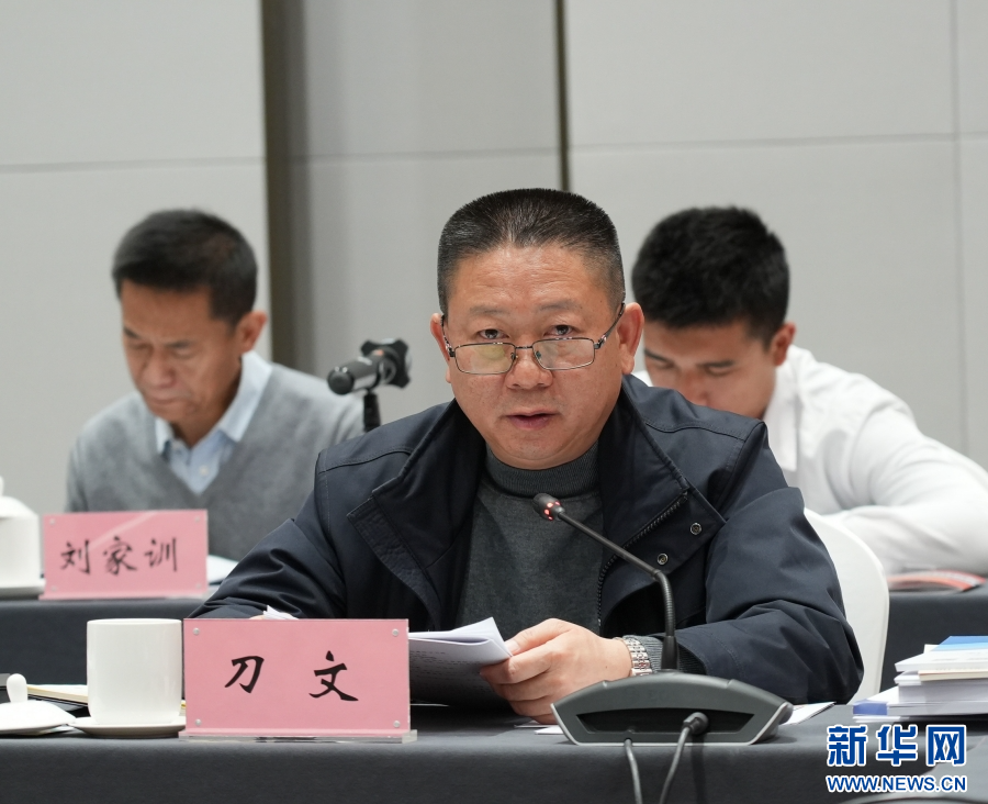 云南省人大代表、西雙版納州州長刀文在西雙版納州代表團全體會議上發言(1月18日攝)。新華網發(張紹山 攝)