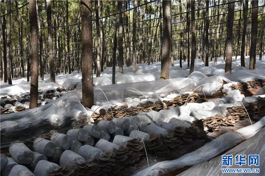 永勝縣林下經濟長坪產業園區種植的平菇(2024年11月27日攝)。新華網發(和潤仙 攝)