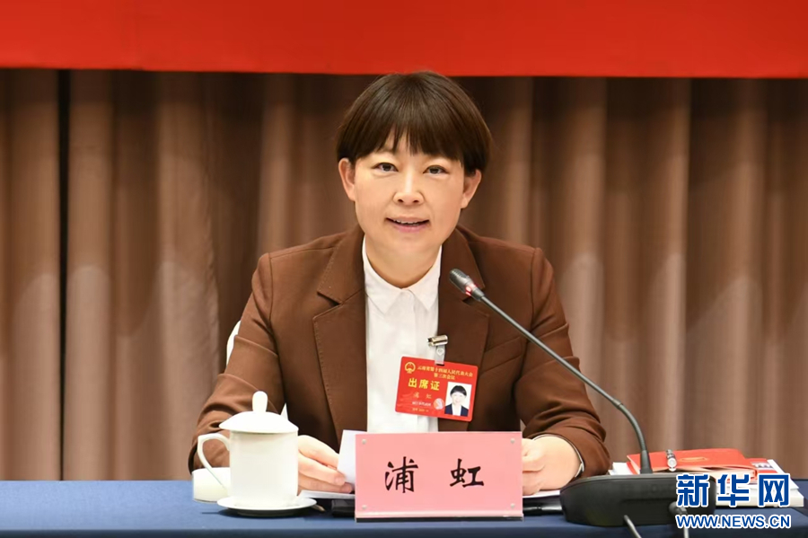 云南省人大代表、麗江市委書記浦虹在麗江市代表團全體會議上發言(1月18日攝)。新華網發(趙慶祖 攝)