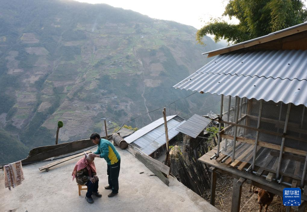1月12日,在稱桿鄉前進村父母家中,桑南才為父親理發。因工作繁忙,桑南才少有時間回家探望雙親。