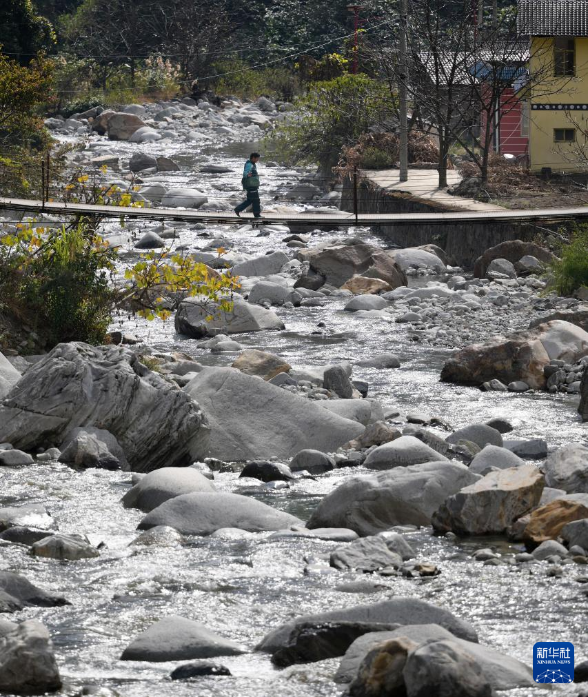 1月13日,桑南才前往稱桿鄉堵堵洛村投遞郵件時走過一座吊索橋。