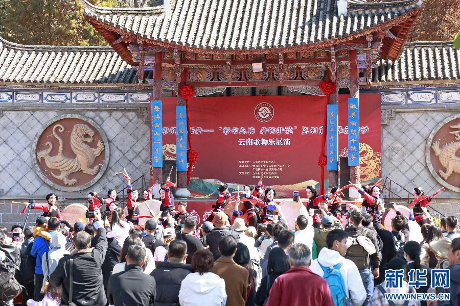 1月23日,云南省昆明市陽光和煦,近百名表演者身著盛裝、載歌載舞,一場融合多民族特色的巡游活動在云南民族村開展。作為“彩云之南 春韻非遺”非遺賀新春系列活動之一,云南歌舞樂展演巡游活動將于1月23日至26日每日兩次在云南民族村開展。
