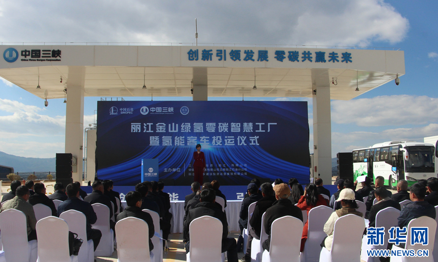 麗江金山綠氫零碳智慧工廠暨氫能客車投運儀式現場(1月25日攝)。新華網發(和潤仙 攝)