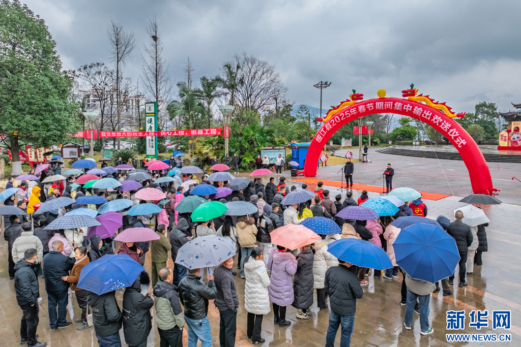 綏江縣2025年春節期間城鄉勞動力轉移就業集中輸出歡送儀式現場(2月3日攝)。新華網發(曾三東 攝)
