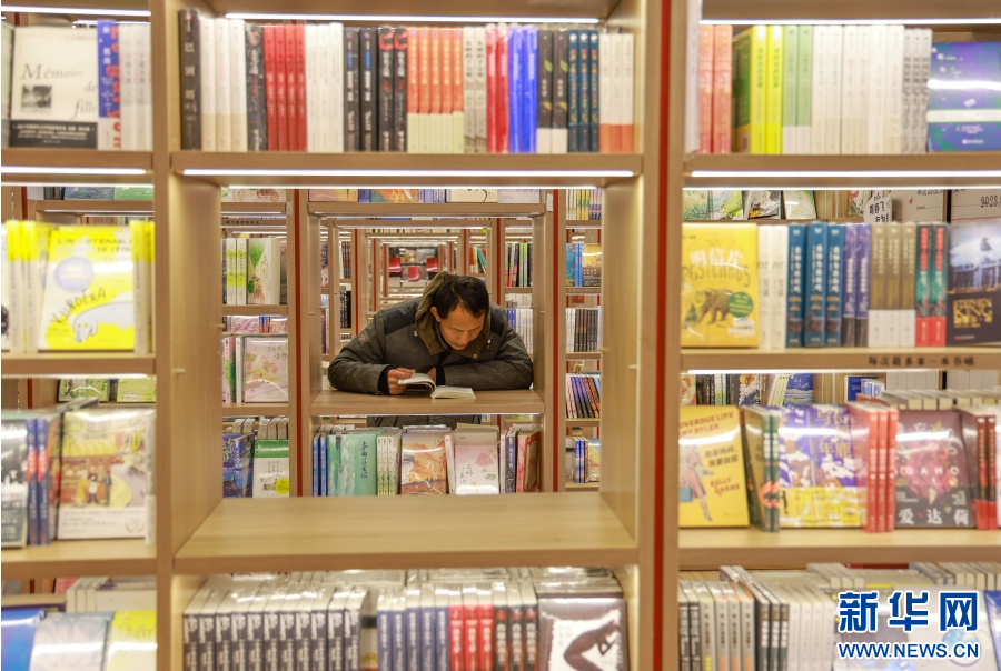 在云南省曲靖市麒麟區新華書店,讀者正在閱讀(2月5日攝)。新華網發(孫文來 攝)