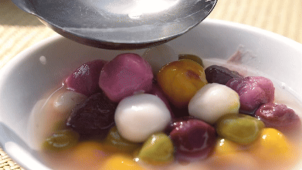 與純白糯米湯圓共同組成五彩湯圓