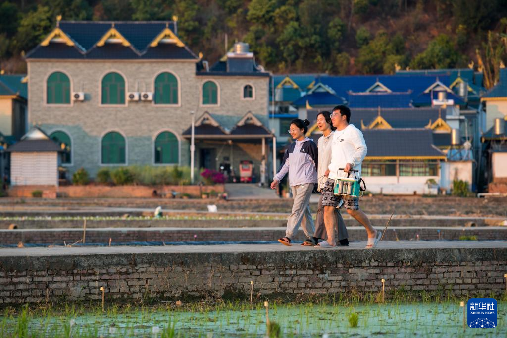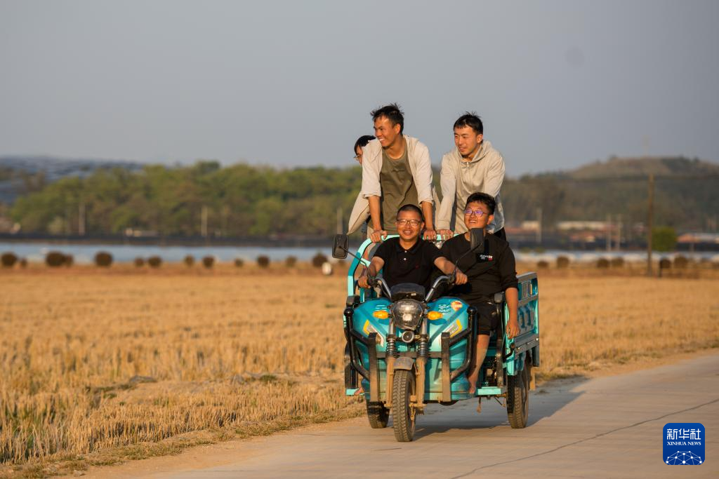 2月27日,師生們結束了一天的勞作,乘坐電動三輪車返回宿舍。新華社發(彭奕凱攝)