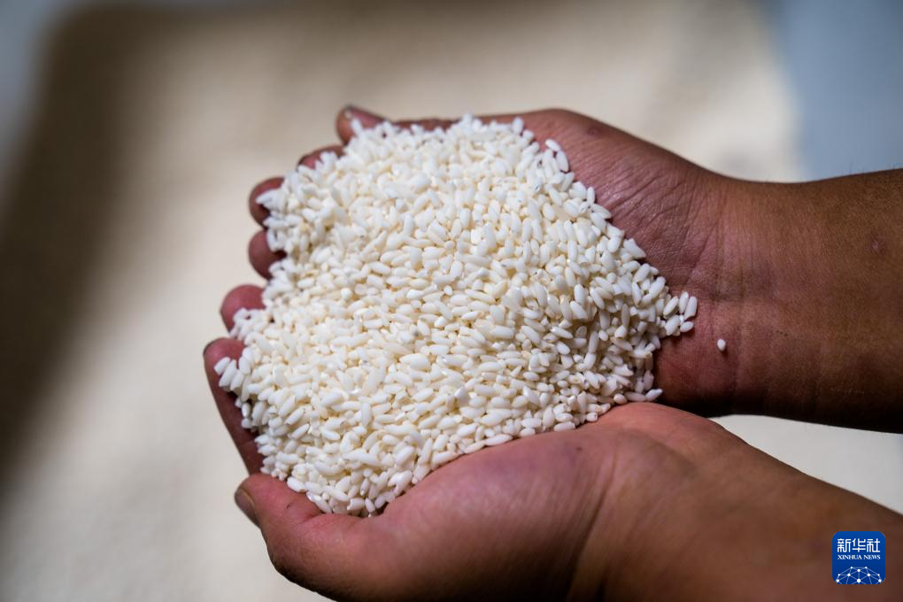 2月27日,多年生稻科技小院的學生在展示稻米。新華社發(彭奕凱攝)