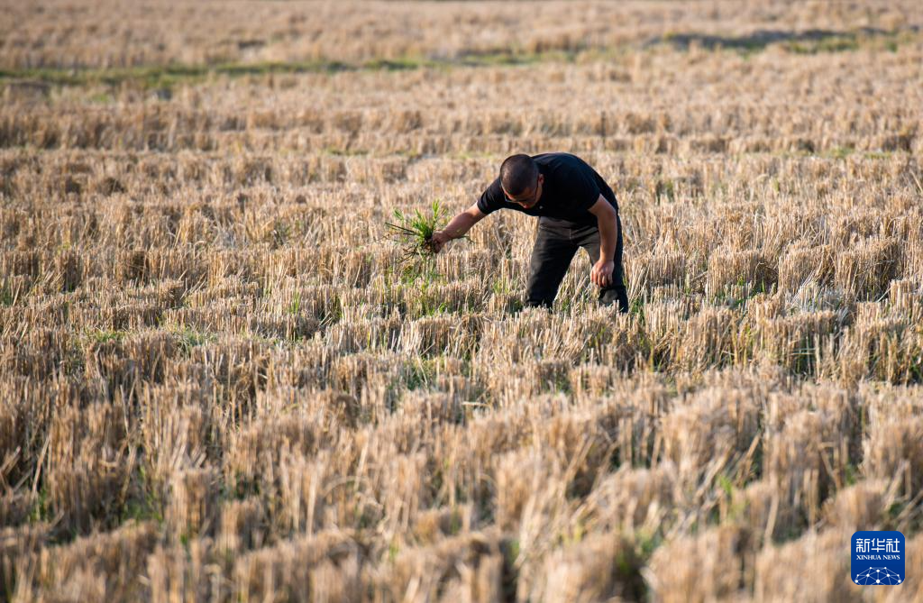 2月27日,青年教師黃光福在試驗田勞作。新華社發(彭奕凱攝)