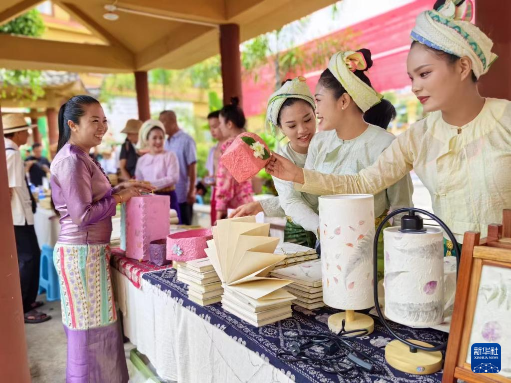 村民們在云南省耿馬縣芒團村推介白棉紙系列文創產品(資料照片)。新華社發