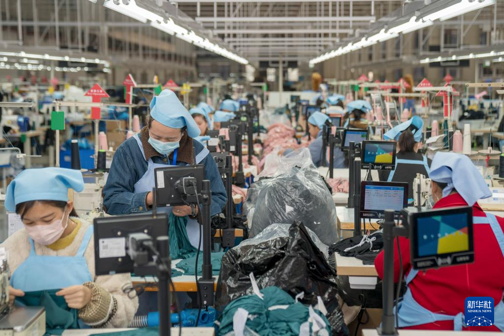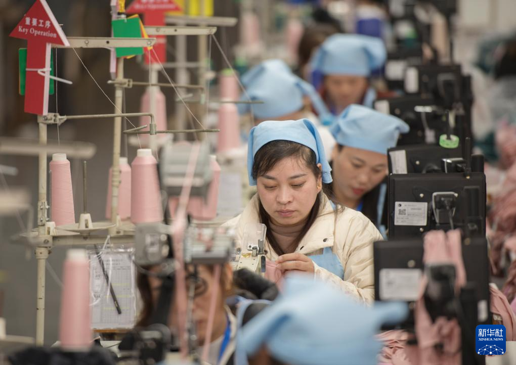 3月7日,在文山州馬關縣的一家服裝制造企業,女工在產線上工作。