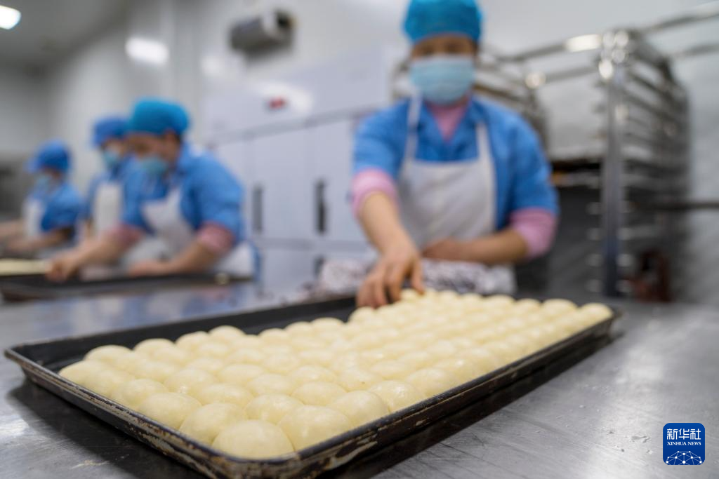 3月7日,在文山州馬關縣的一家食品加工企業,工人在制作面點。