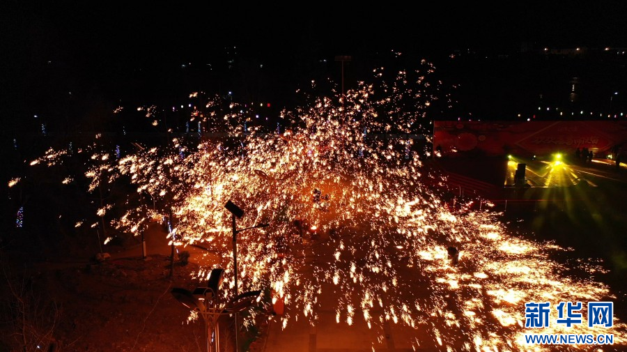 “打鐵花”民俗表演(視頻截圖)。新華網發(魯甸縣融媒體中心供圖)