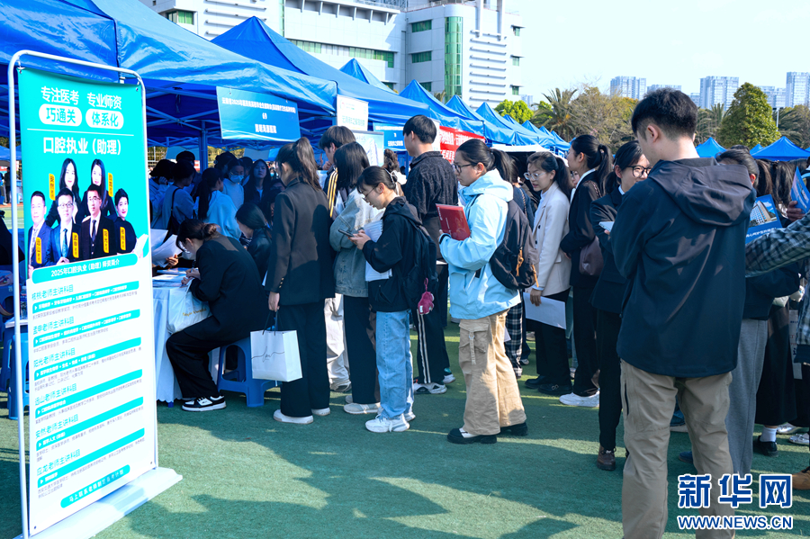 求職學生在基層就業政策宣傳欄前(3月15日攝)。新華網發(劉起 攝)