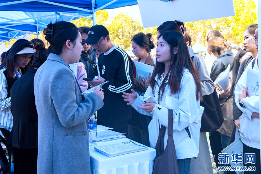 求職學生與用人單位溝通交流(3月15日攝)。新華網發(劉起 攝)