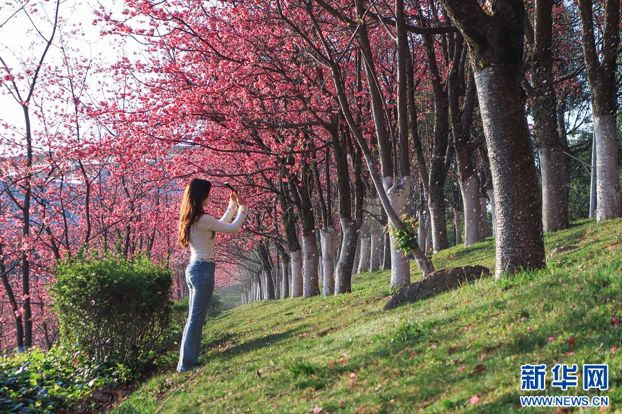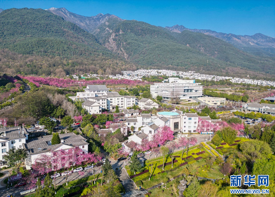 大理大學櫻花盛開(3月11日攝)。新華網發(郭康 攝)