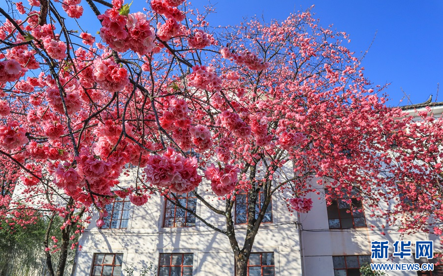 大理大學盛開的櫻花(3月11日攝)。新華網發(郭康 攝)