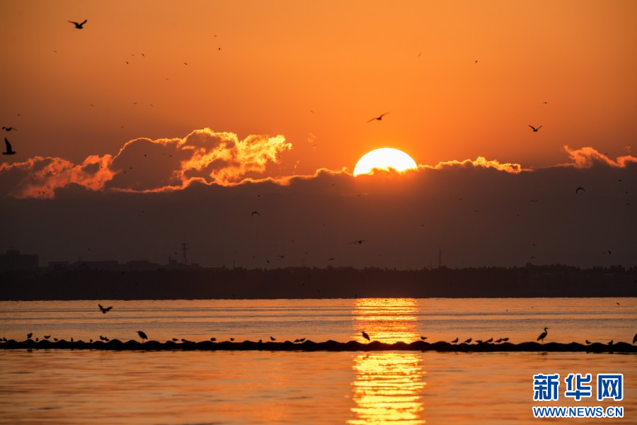 昆明市滇池邊拍攝的日出(資料圖)。新華社記者 胡超 攝