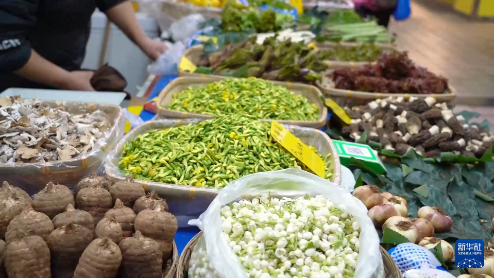 春暖花開之際,云南各種特色山茅野菜大量上市,“逛菜場”成為跨國游客體驗云南生活的新方式。