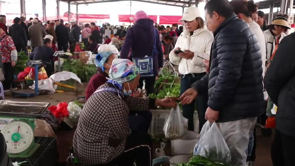 走進云南彌勒滇東南農產品交易市場,便能感受到濃郁的春日氣息,各攤位擺放整齊,選購市民絡繹不絕,精心挑選著心儀的菜品。
