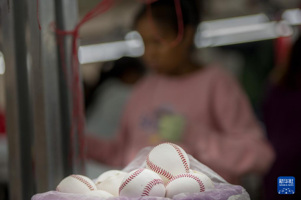 3月26日,工人在怒江州最大的易地扶貧搬遷安置點和諧社區棒球工廠制作棒球。