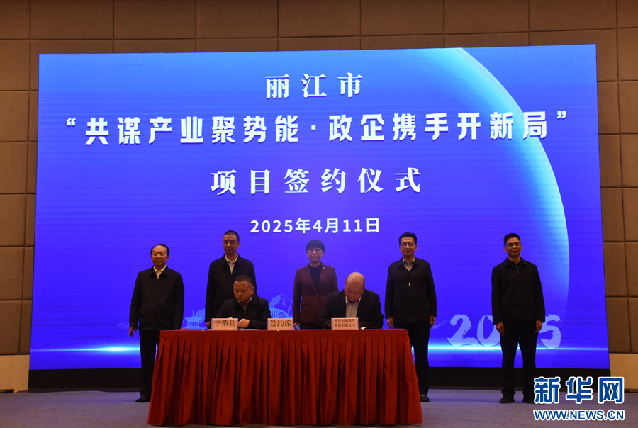 寧蒗縣與企業簽訂項目合作協議(4月11日攝)。新華網發(和潤仙 攝)